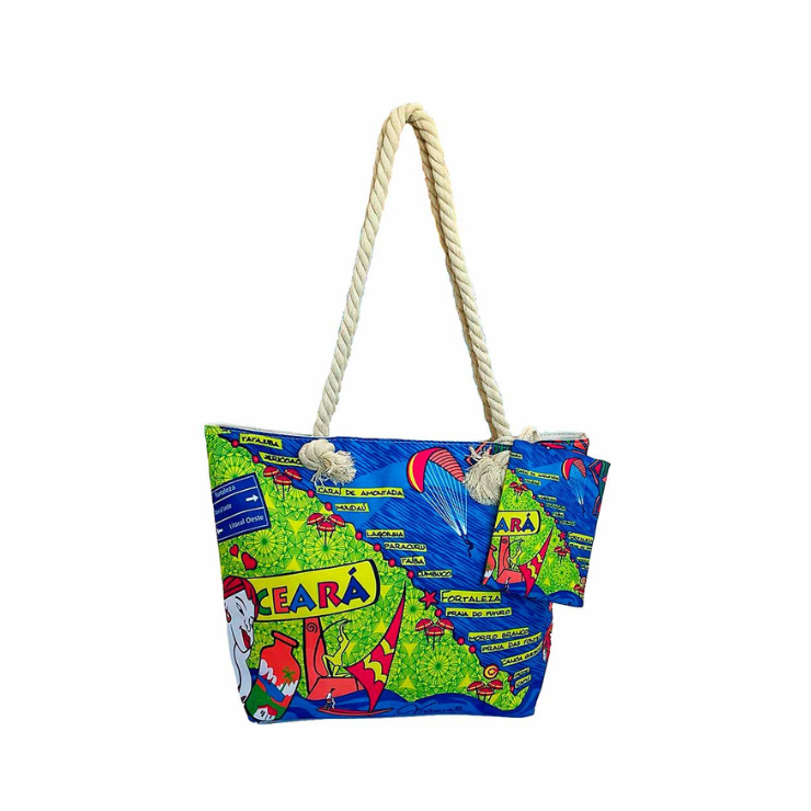 A Bolsa Ceará traz cores vibrantes e uma estampa artística inspirada na cultura e nos principais pontos do Ceará, perfeita para quem ama estilo com identidade. Possui material resistente, ótimo acabamento e alças em corda que garantem conforto e charme rústico.