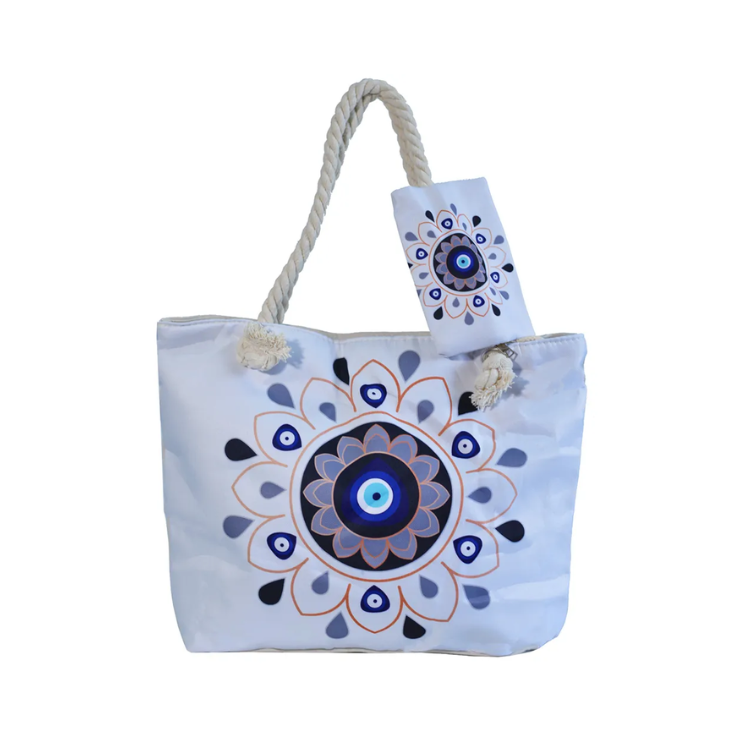 A Bolsa Olho Grego se destaca pelo design sofisticado em tons de azul, trazendo o símbolo de proteção e boas energias em uma composição moderna e elegante. Ideal para quem busca um acessório com significado, sem abrir mão do estilo. Confeccionada com material resistente, possui ótimo acabamento e alças em corda que garantem conforto no uso diário. Espaçosa e versátil, é perfeita para passeios, praia ou rotina urbana. 👉 Entre em contato pelo WhatsApp ou solicite sua cotação diretamente no site!