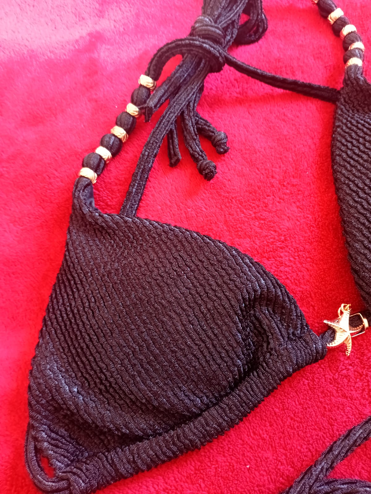 Biquíni Meia Taça com Alça de Miçangas Meia Taça com Bojo Maleável, Aro e miçangas Cor: vinho Oferta imperdível!!