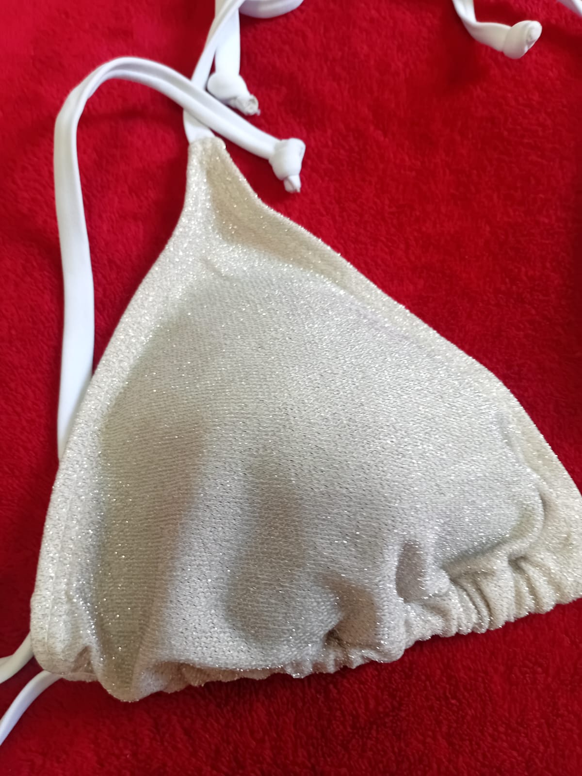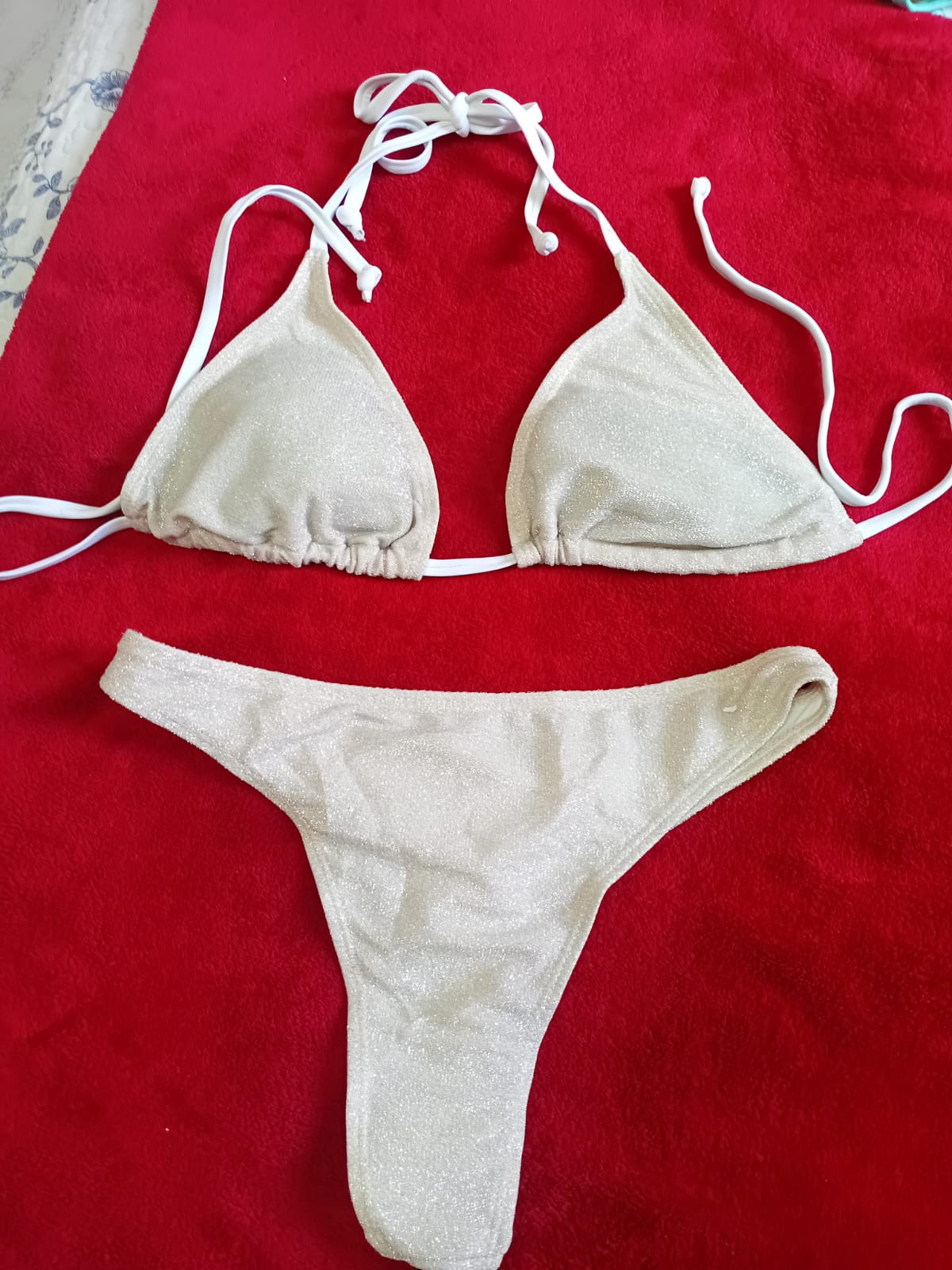 Biquíni Meia Taça e Calcinha Cintura Alta Cor: Pérola Tamanho: P e M