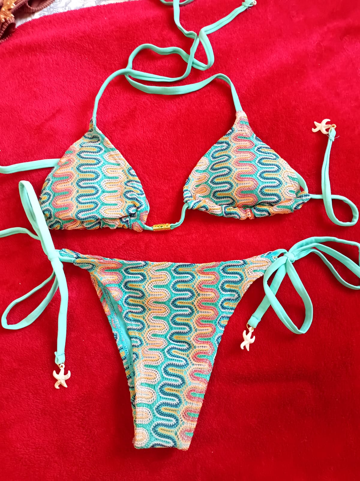 Biquíni Meia Taça com Calcinha de Amarrar Cor: Azul claro Totalmente forrado. Oferta inperdível!!