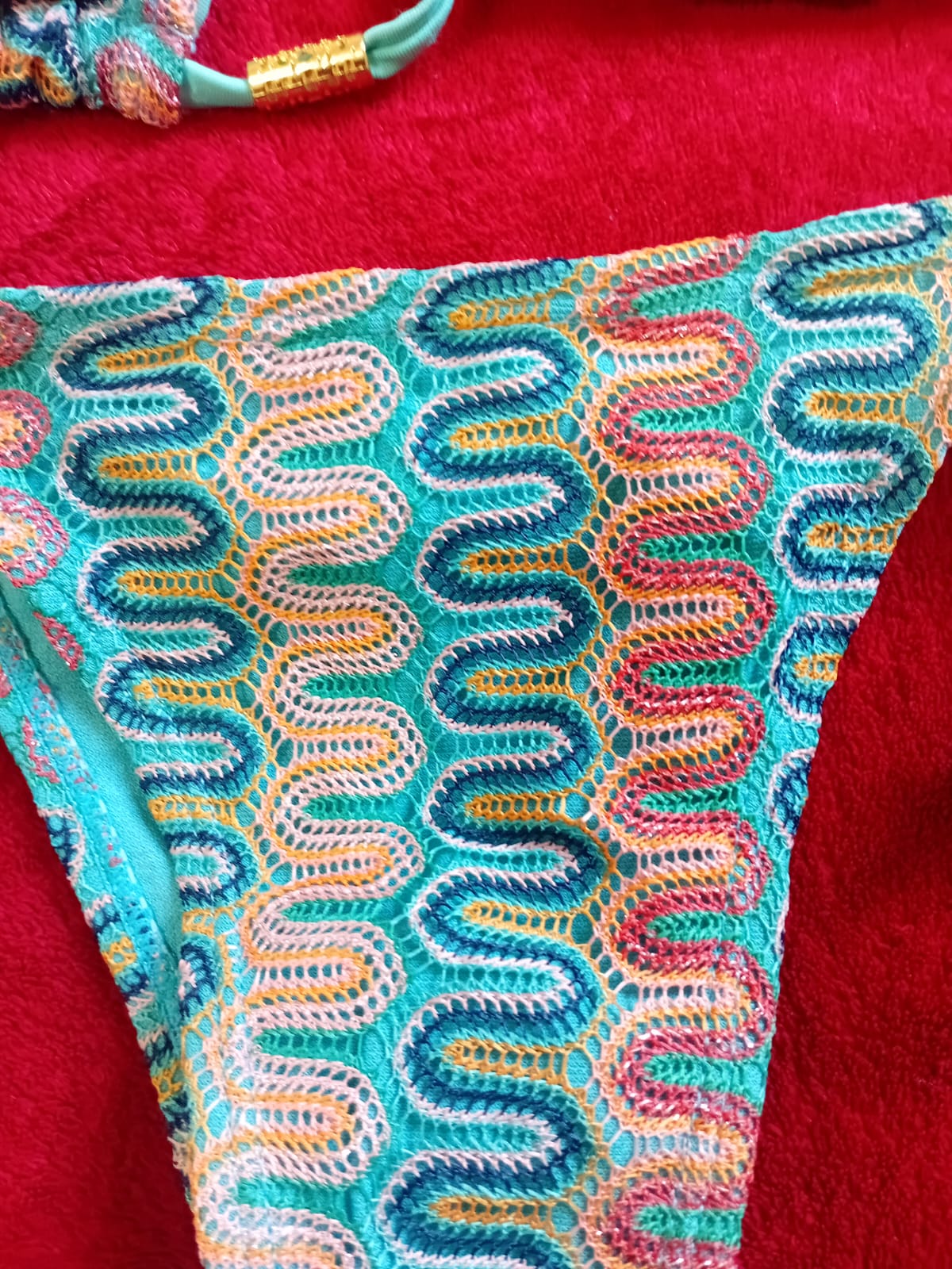 Biquíni Meia Taça com Alça de Miçangas Meia Taça com Bojo Maleável, Aro e miçangas Cor: vinho Oferta imperdível!!