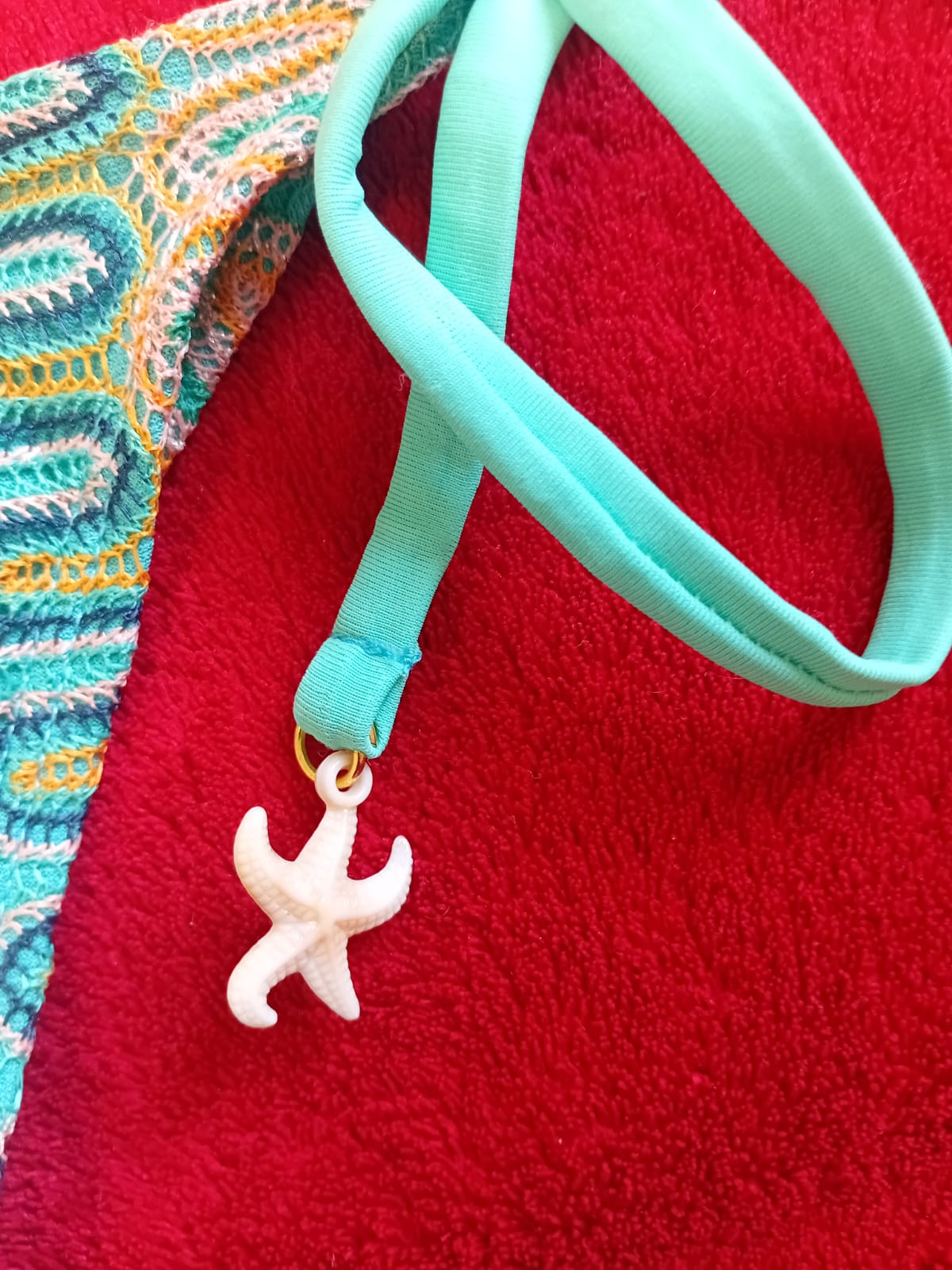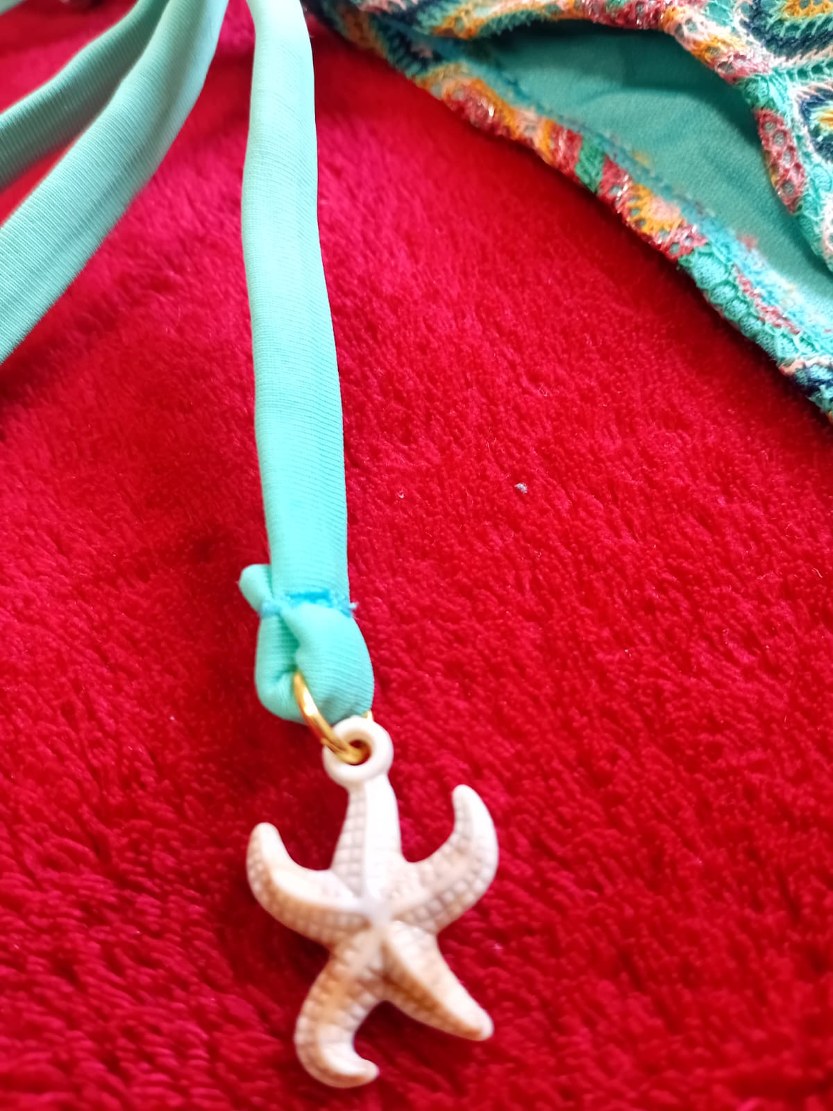 Biquíni Cortininha + Calcinha de Amarrar Detalhes em conchas Cor: Azul Tamanho: GG