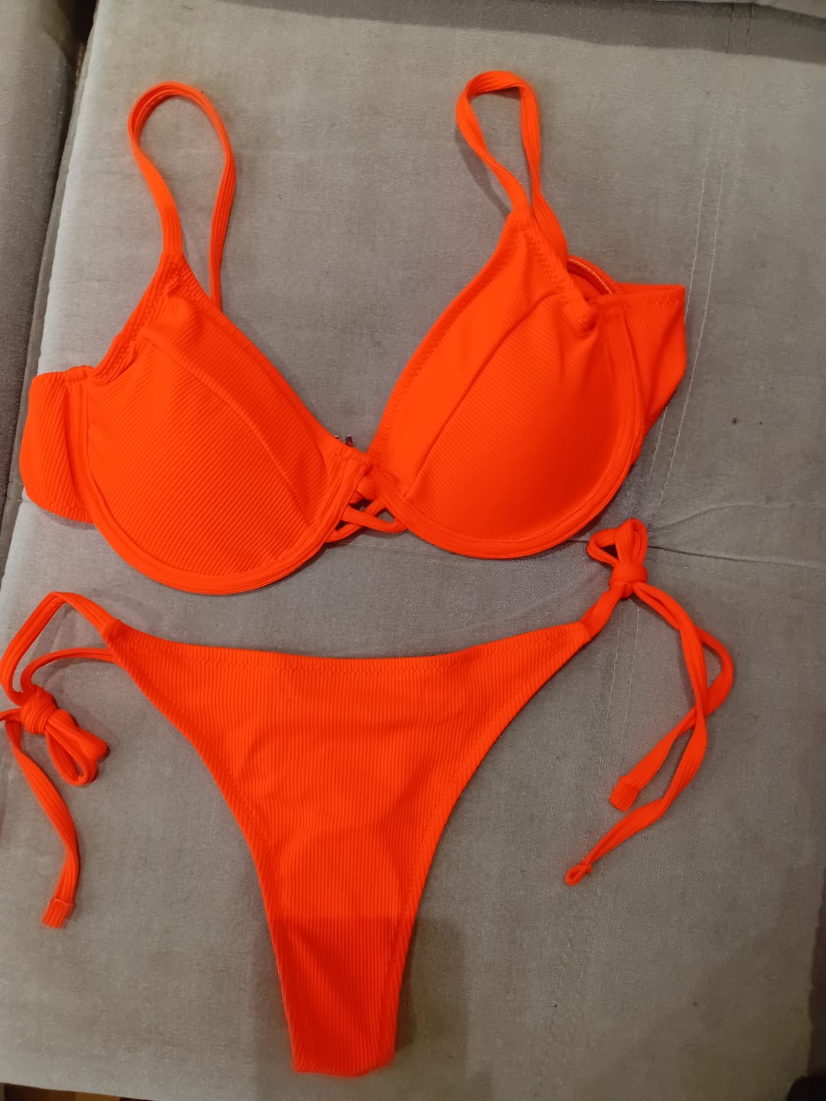 Biquini Meia Taça + Calcinha de Tiras Cor: Laranja