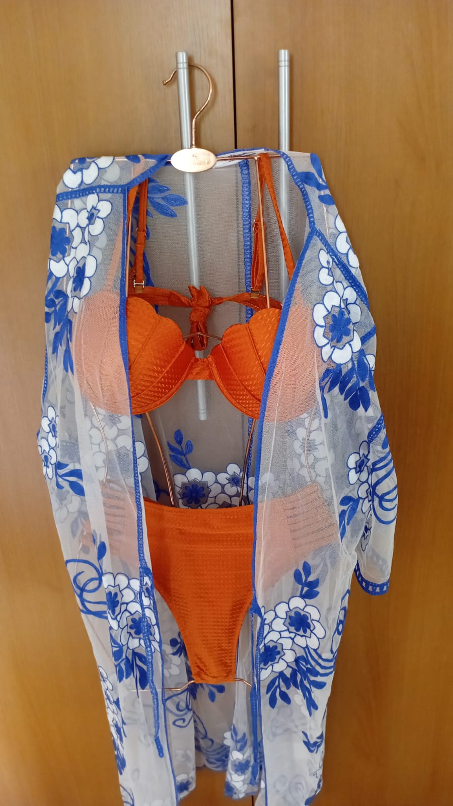 Conjunto Cortininha Azul Calcinha de amarrar +saída de Praia Curta Cor:Azul Tamanho:GG