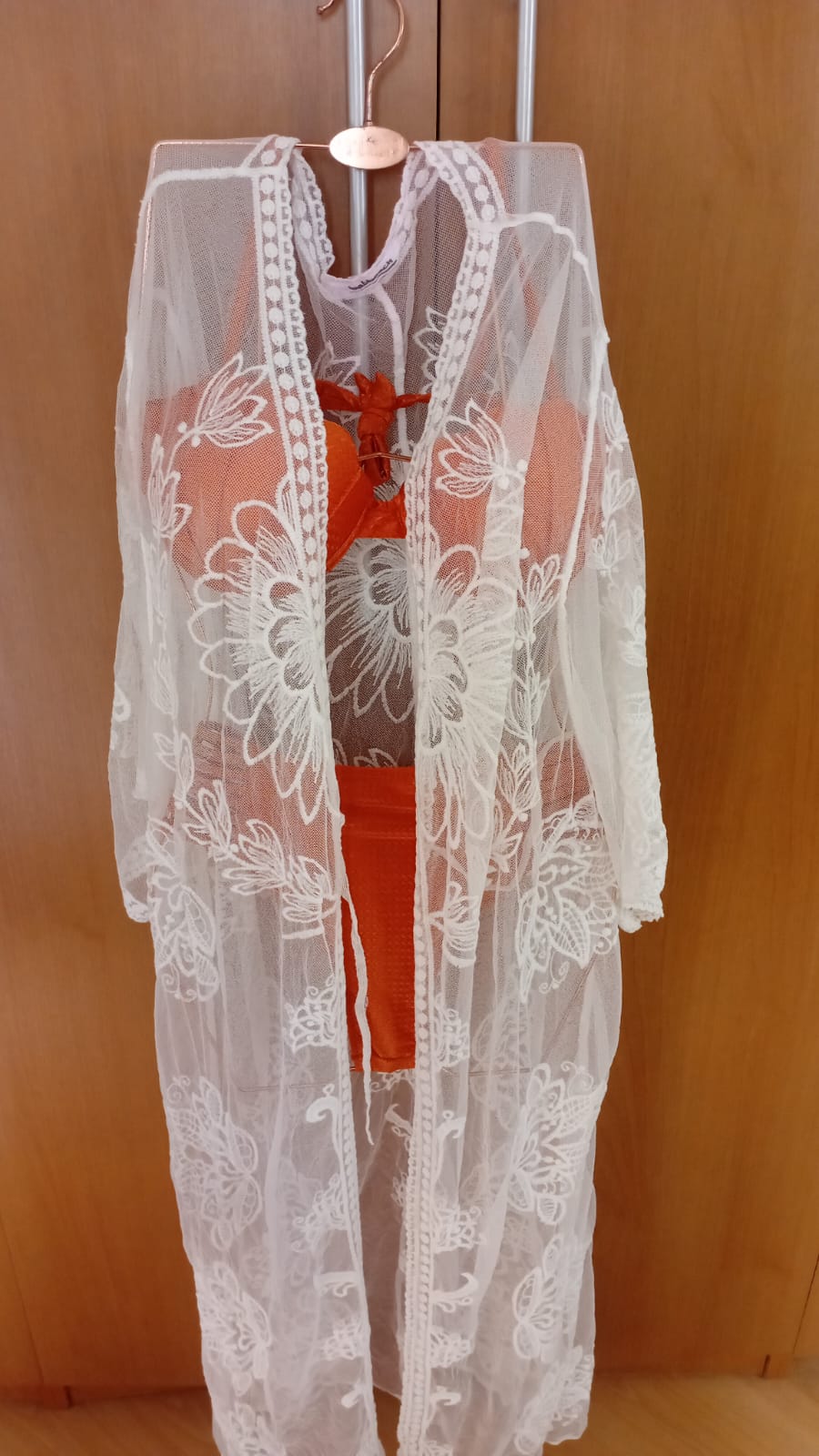 Biquíni Cortinha + Calcinha de Amarrar Cor: Bordado laranja Tamanho: G Oferta imperdível!