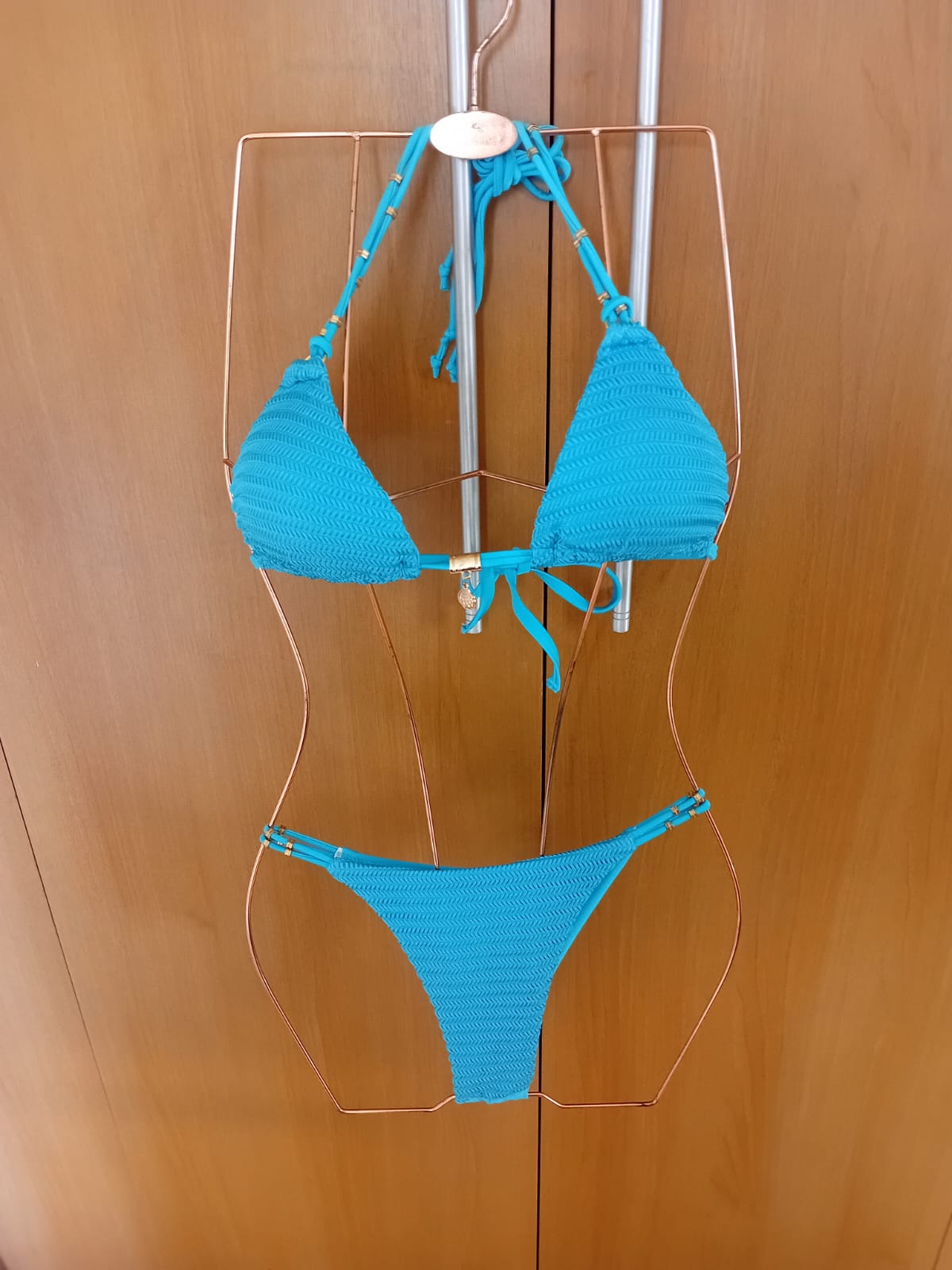 Biquíni Meia Taça com Calcinha de Amarrar Cor: Azul claro Totalmente forrado. Oferta inperdível!!